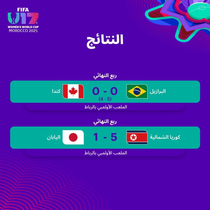 北京时间11月2日,U17女足世界杯1/4决赛先赛2场,最终朝鲜女足和巴西女足分别淘汰了日本队和加拿大队,成功会师半决赛。