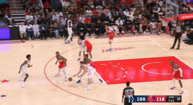 当然,也有不足,一方面谢泼德的运控、持球创造力还略显不足,另一方面受限于身体条件(身高1米88、臂展1米91、不够强壮),谢泼德偶尔还是会被针对。