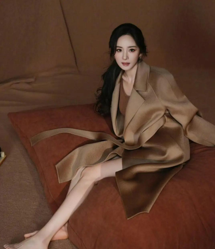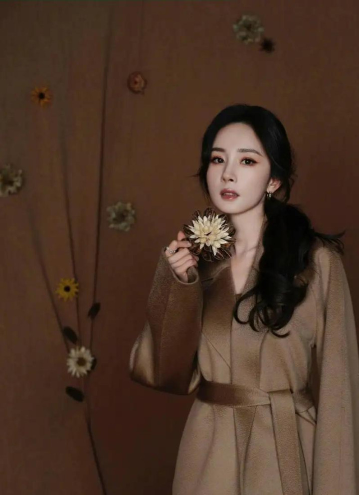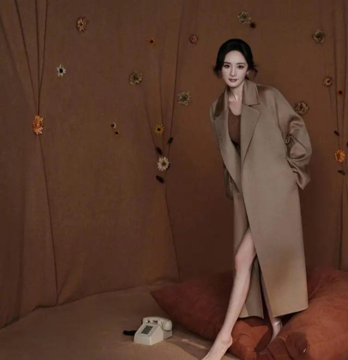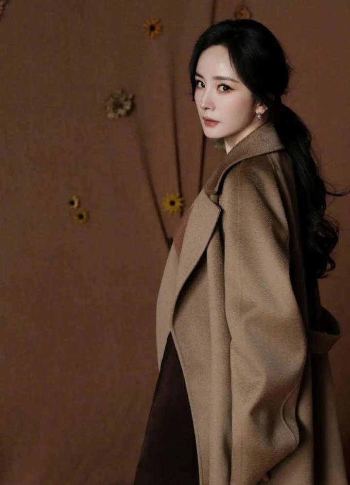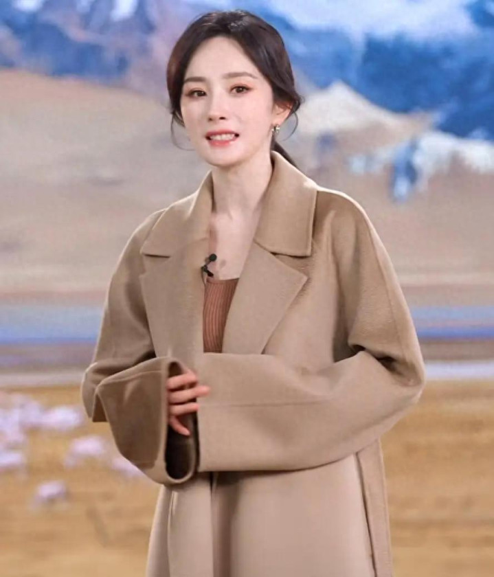 杨幂三只小山羊直播造型吸睛 驼色长款大衣时尚又高级