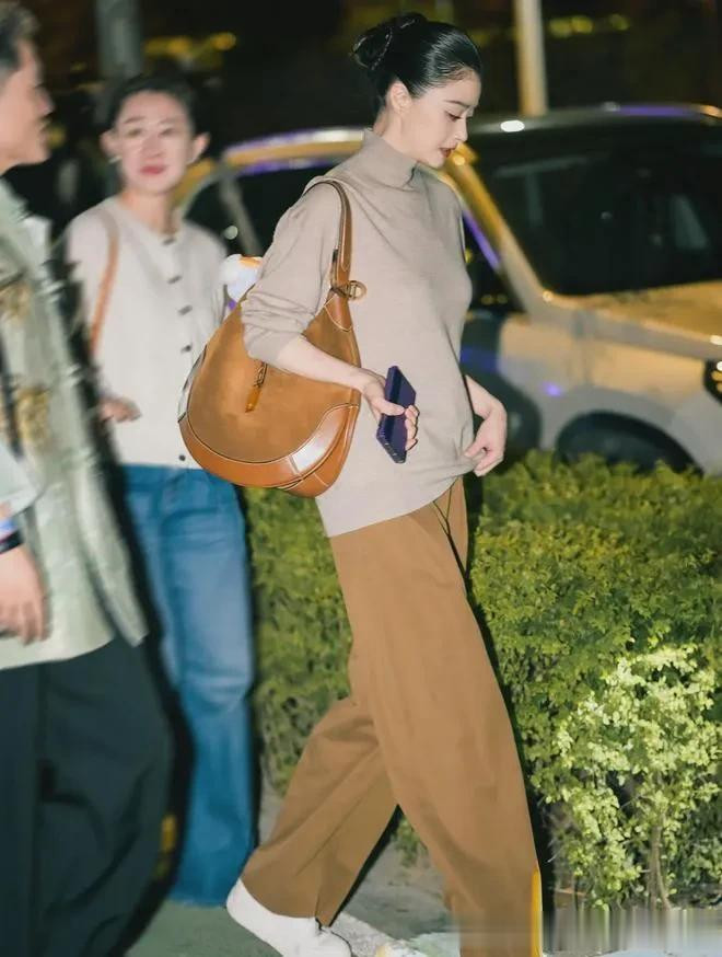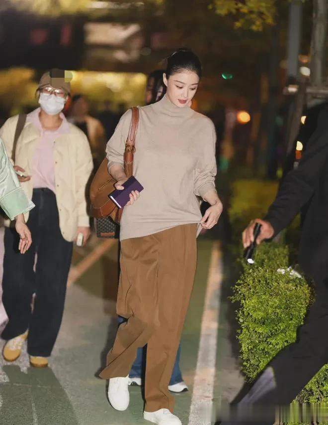 41岁蒋欣减肥后美得更高级! 穿高领毛衣+棕色长裤, 简约又高级!